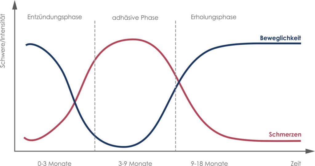 In der dritten Phase (Erholungsphase) kehrt die Beweglichkeit langsam zurück, und die Schulter wird wieder beschwerdefrei.